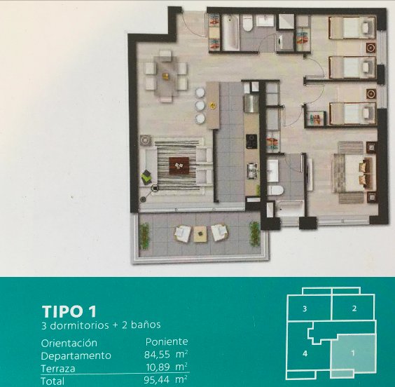 95,44 incluido terraza de 10 metros