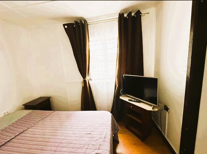 Posee cocina americana con refrigerador, baño independiente completo, cama matrimonial