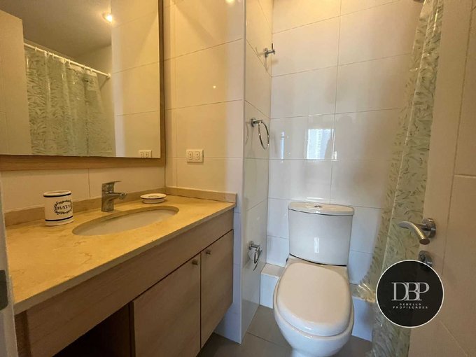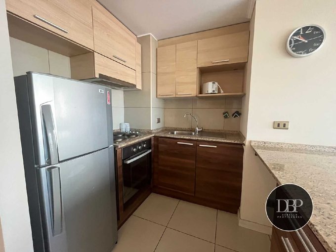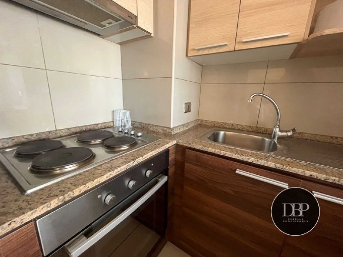 Piso flotante en living, dormitorios Alfombrados Cocina con cubierta de granito gris, equipada con encimera, horno eléctrico empotrado. Baño con vanistorio y cubierta de mármol.