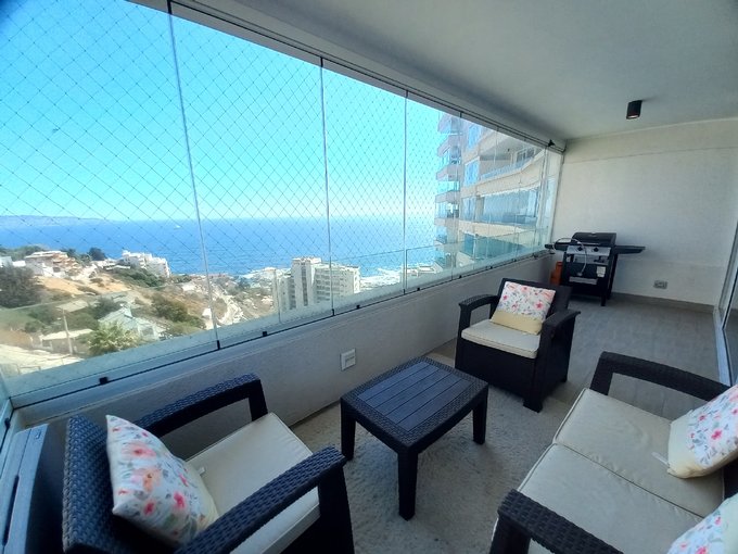 Se arrienda departamento amoblado con vista al mar, ubicado en Av. Edmundo Eluchans, Reñaca, Viña del Mar, en una ubicación privilegiada, cercano a centros comerciales, supermercados, clínica, farmacias y colegios, con excelente conectividad y locomoción colectiva a pasos hacia Viña del Mar, Valparaíso y Concón.