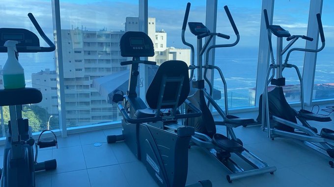 El edificio dispone de hall de acceso, conserjería y accesos controlados 24/7, ascensores, piscina exterior para adultos y niños, piscina interior temperada, juegos infantiles, quinchos, sala multiuso, sala lounge con vista panorámica a la bahía de Valparaíso y Viña del Mar, gimnasio equipado, sauna, lavandería, bicicleteros y estacionamientos de visitas.