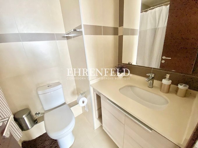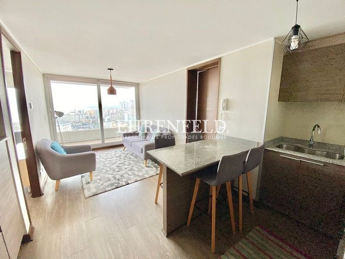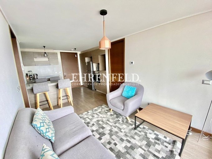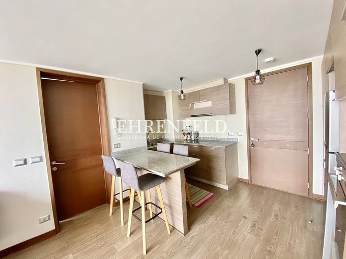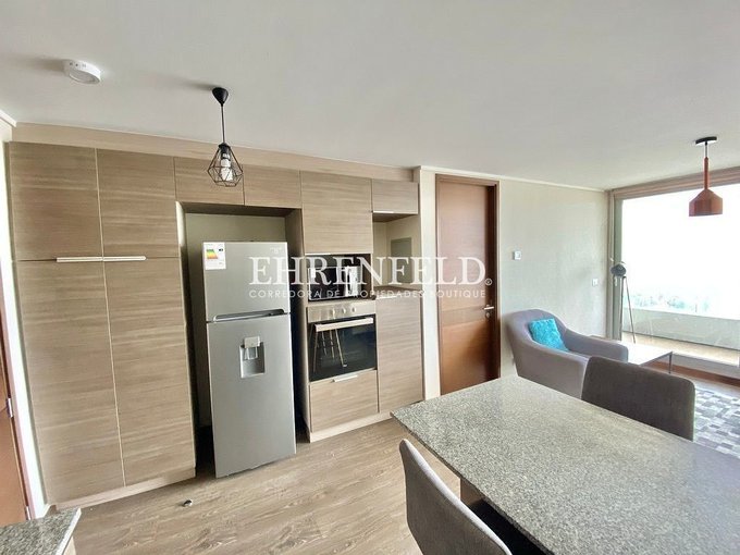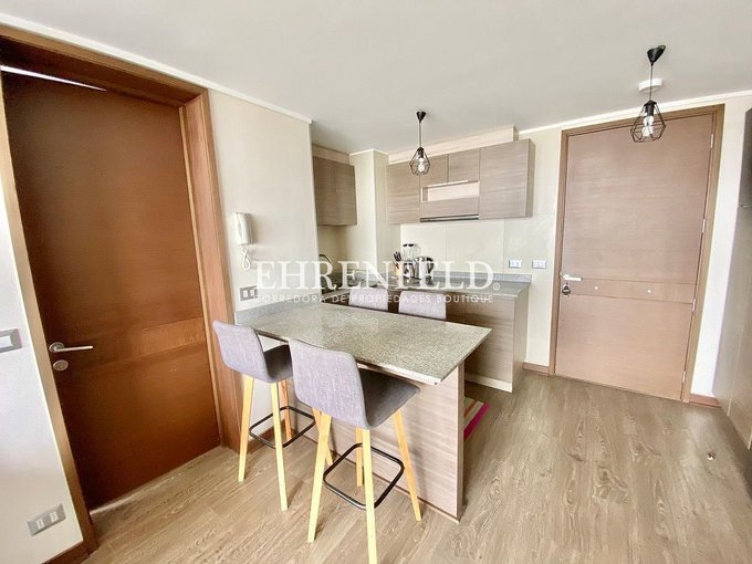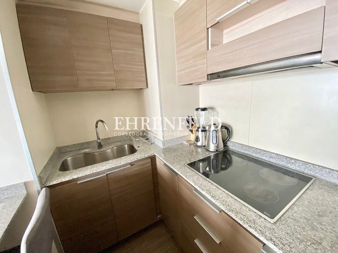 - Cocina integrada, amoblada y equipada con horno eléctrico y campana, refrigerador y microondas.