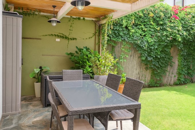 Jardín formado con terraza.
