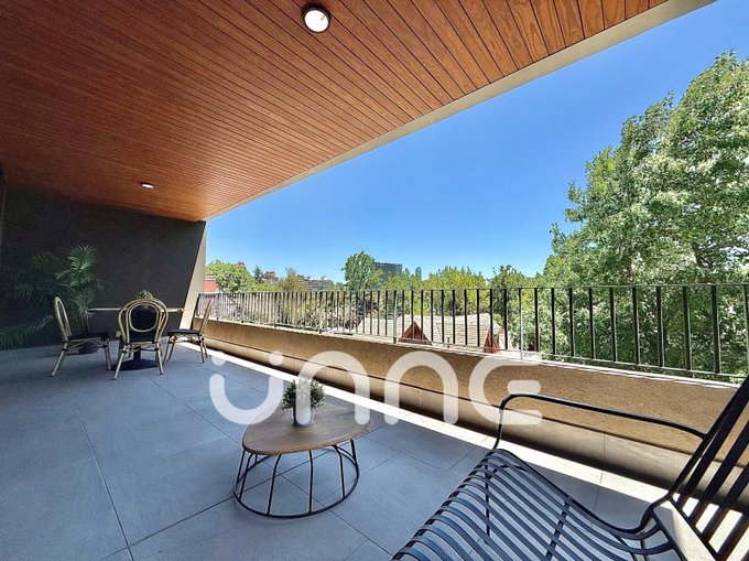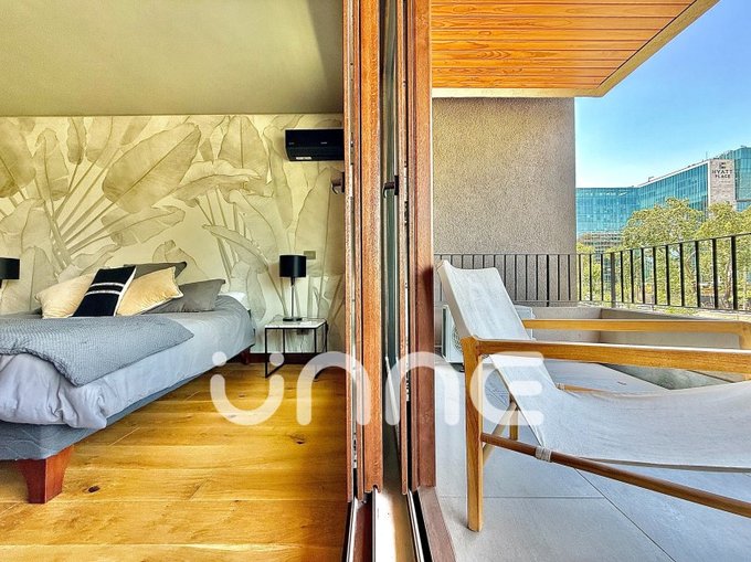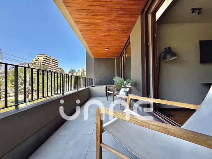 Este departamento en arriendo se ubica en Parque Bicentenario, al borde de Vitacura y Las Condes, cerca de Vespucio, Parque Arauco, y destaca por ofrecer espacios funcionales y una distribución eficiente. El área social integra living, comedor y una cocina equipada con artefactos Bosch, con acceso directo a una terraza que brinda una vista totalmente despejada al entorno.