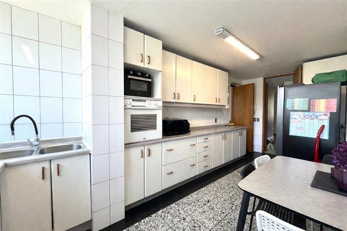 Cocina amoblada y equipada que cuenta con espacio para lavavajillas y lavadora.