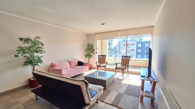 Este departamento cuenta con 114 m de construcción distribuidos inteligentemente en 133 m de superficie total, con 2 amplias terrazas con hermosa vista. Ubicado en Condominio Jardines de la Candelaria está en el lugar ideal para disfrutar de la tranquilidad del bosque cercano a la playa, rodeado de árboles y espacios para descansar durante todo el año en familia. Dispone de 3 dormitorios y 2 baños, perfectos para acomodar a tu familia o recibir invitados.