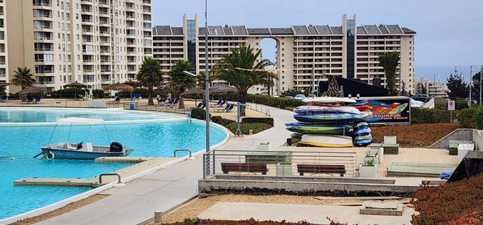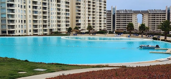 Excelente departamento ubicado en Edificio Horizonte del Condominio Laguna Bahía en la comuna de Algarrobo. El Condominio tiene acceso controlado las 24 horas del día, cámaras de vigilancia en circuito, amplia laguna artificial con playa, gimnasio, áreas verdes comunes y estacionamiento para visitas.