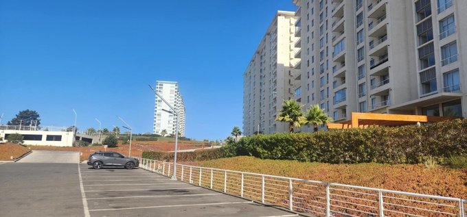 Excelente departamento ubicado en Edificio Océano del Condominio Laguna Bahía con acceso por avenida parque Norte 200 en la comuna de Algarrobo. El Condominio tiene acceso controlado las 24 horas del día, cámaras de vigilancia en circuito, amplia laguna artificial con playa, gimnasio, áreas verdes comunes y estacionamiento para visitas.