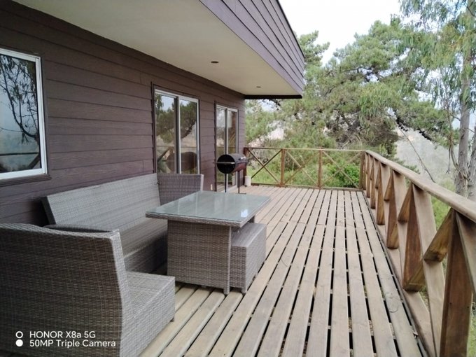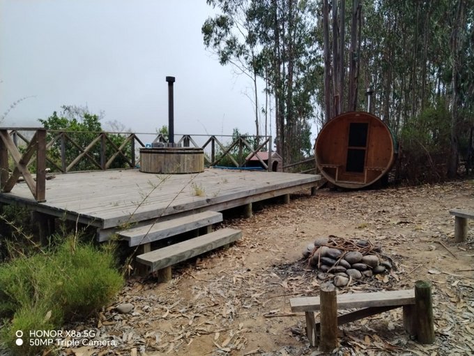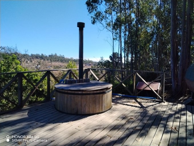 En el exterior hay una segunda terraza con una tinaja de agua caliente y una cabina de sauna, todo inmerso en el bello bosque de Tunquén. Sólo imagina despertar cada mañana rodeado de naturaleza y aire puro, disfrutando de la tranquilidad y privacidad que aqui encontraras,