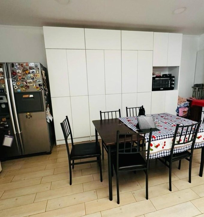 Amplia cocina amoblada con comedor de diario.
