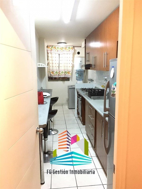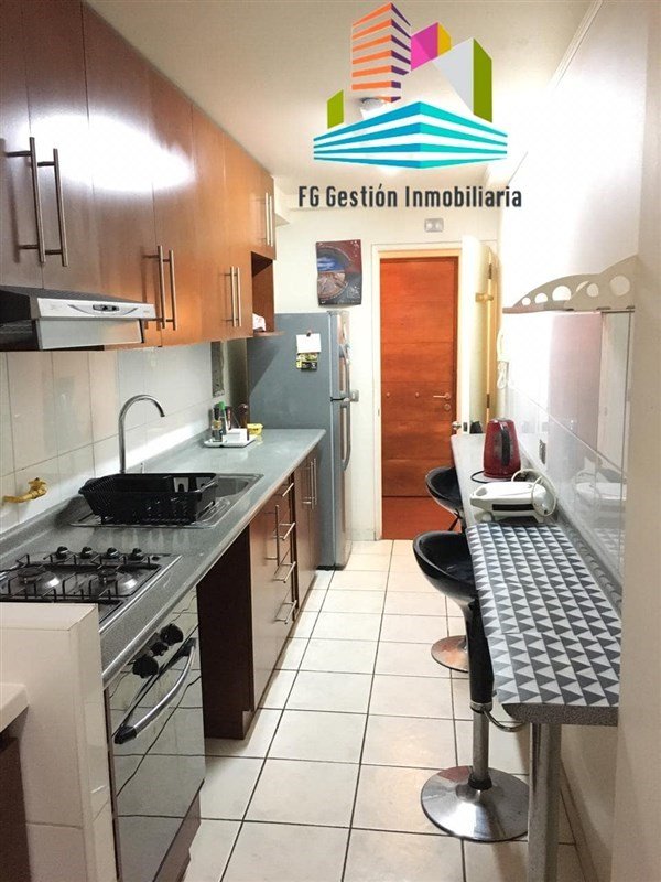 Cocina amoblada, balcón con vista al poniente.
