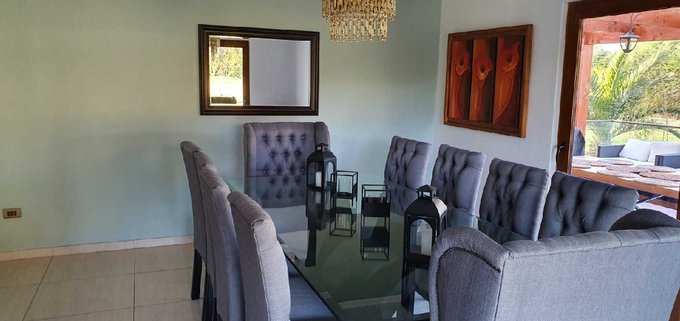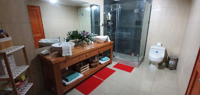 La casa cuenta con gran living y comedor separados, amplia cocina con comedor diario, terraza con porcelanato, 4 dormitorios, uno de ellos en suite, más pieza de servicio, 5 baños en total, ventanas termopanel, buena aislación tanto para verano como invierno.