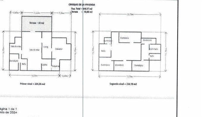 Consta de 7 dormitorios, 3 baños, living, comedor, 3 salas de estar.