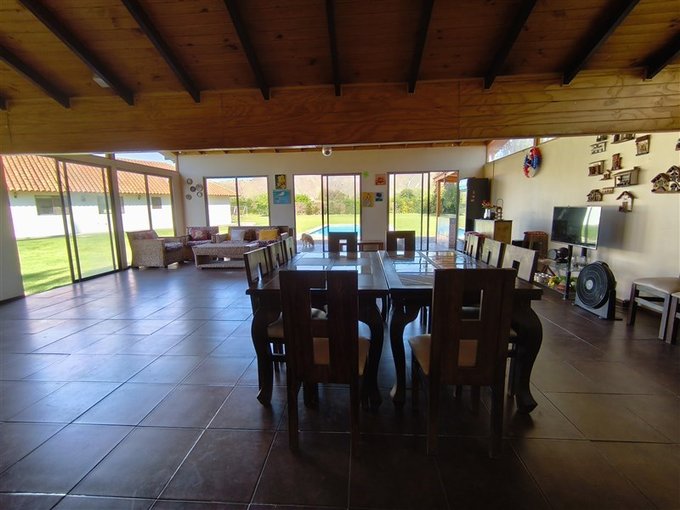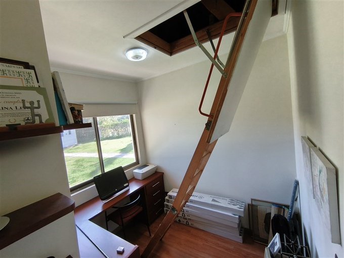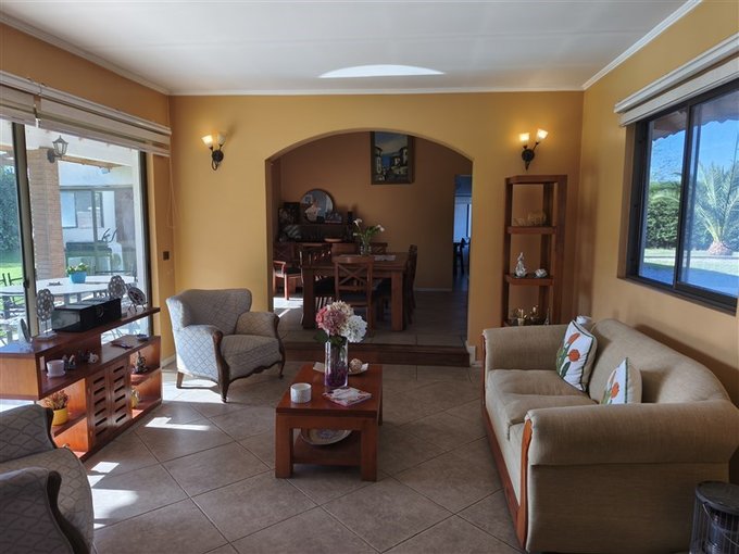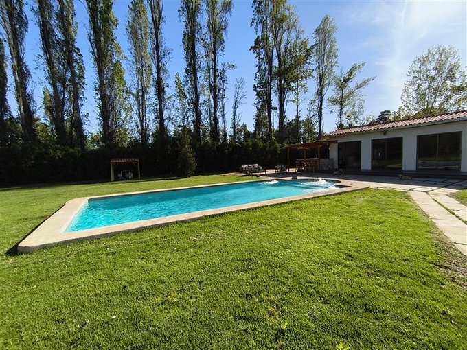 En el exterior, un *hermoso jardín formado* rodea una *piscina con vista panorámica privilegiada, además de un **quincho completamente equipado* con baño, cocina y amplio salón para disfrutar con familia y amigos. El terreno también dispone de un *gran canil, **portón de acceso automatizado, y una **amplia entrada que rodea una pileta central, con espacio para estacionar cómodamente **5 a 6 vehículos*.