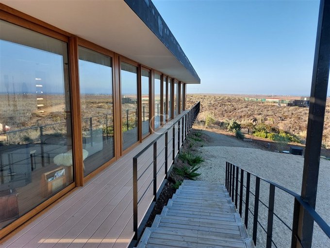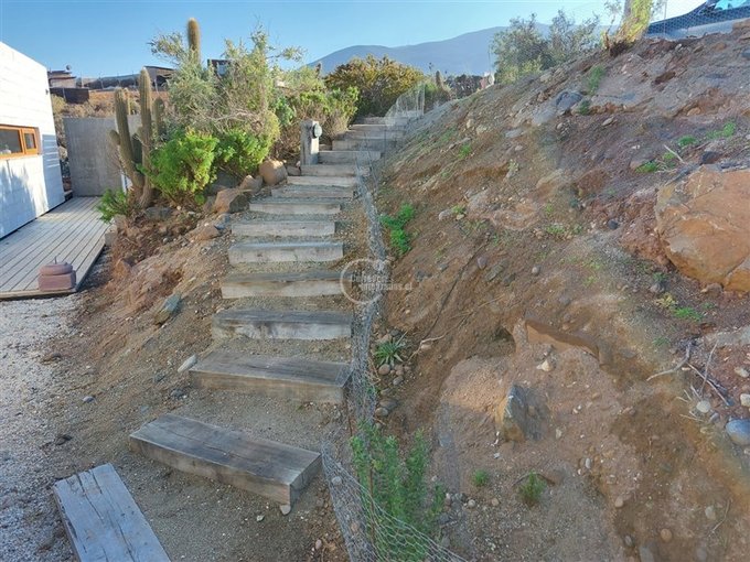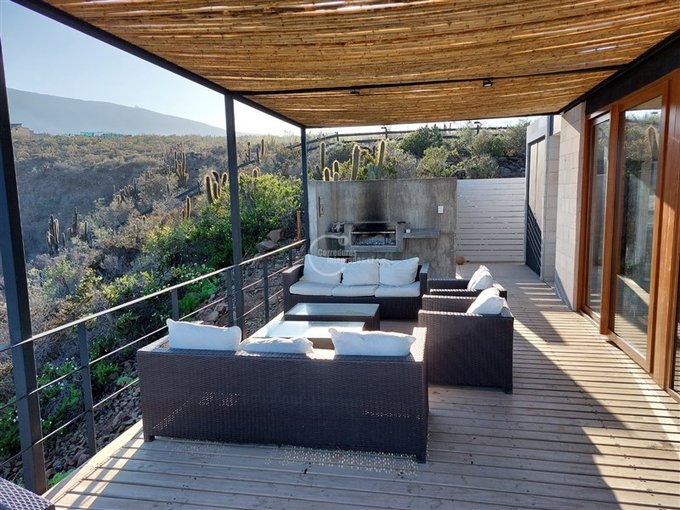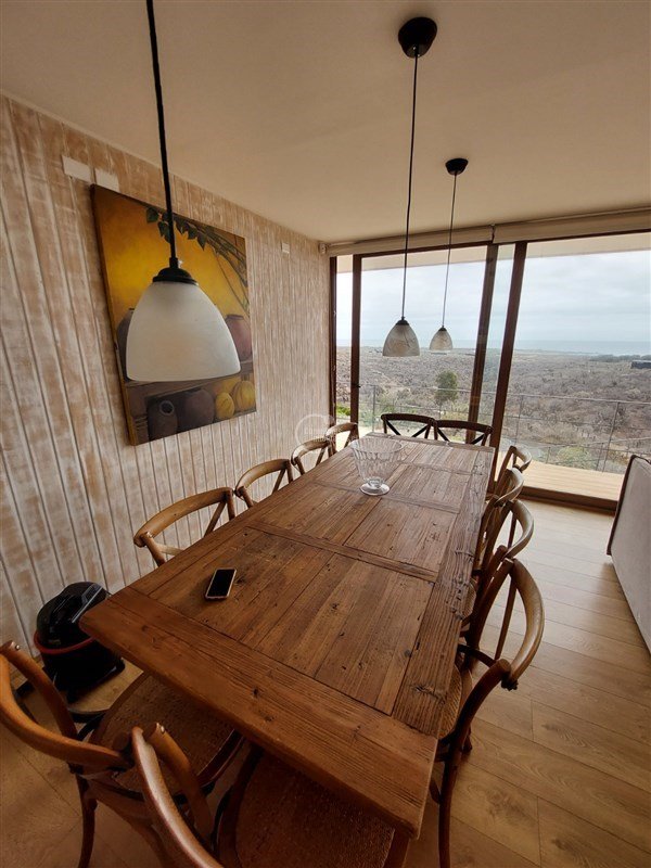 Espectacular casa de 174 m más 40 m de terraza perimetral, en terreno de 6897 m en el exclusivo condominio Agua Dulce, en la localidad de Huentelauquén. La casa está emplazada sobre una meseta, lo que garantiza una vista panorámica al mar, sin riesgo de obstrucción.