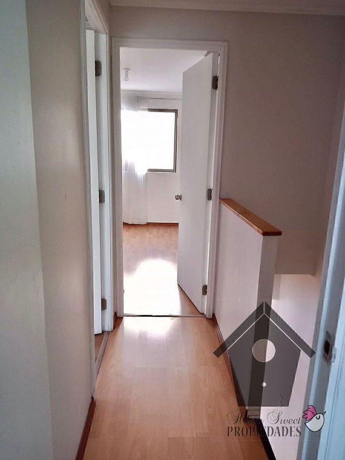 La casa pareada y de dos pisos se compone de un primer piso construido en albañilería de ladrillo, y un segundo piso construido en tabiquería y forrado exteriormente con Siding PVC blanco. Ventanas de aluminio incluido el Bow Windows del Living. Tiene piso flotante en living comedor pasillo y dormitorios y cerámica en baños y cocina. La cocina semi amoblada incluye instalación para lavadora. El calefon para el agua caliente se encuentra instalado en patio. Con excepción del antejardín, y jardineras por el costado de la entrada de autos, el exterior se encuentra totalmente pavimentado. Tiene portón de fierro cerrado con madera.