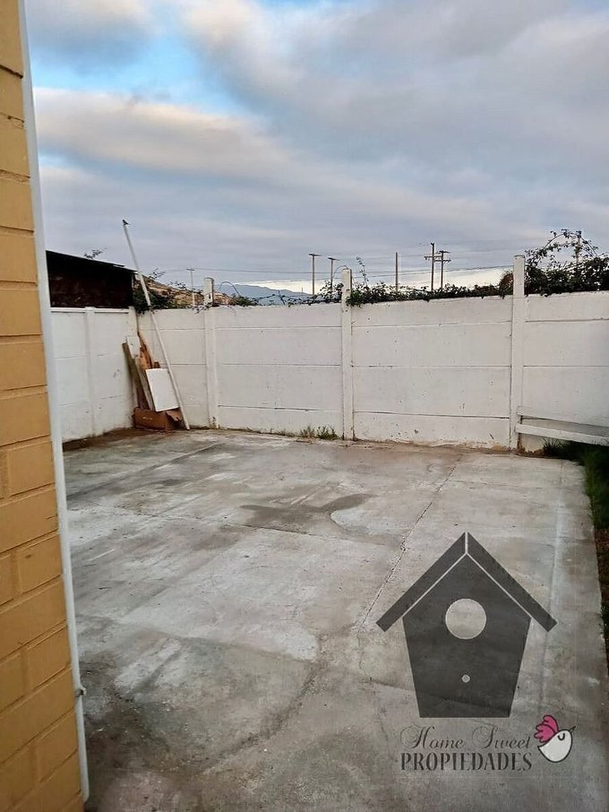 Exterior: Al frente un pequeño antejardín, por el costado una entrada para auto y al fondo un patio.