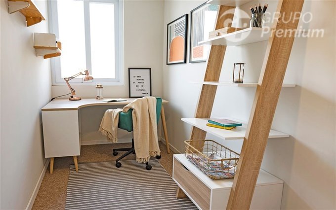 -Espacio de almacenamiento en el pasillo con repisas o para un escritorio