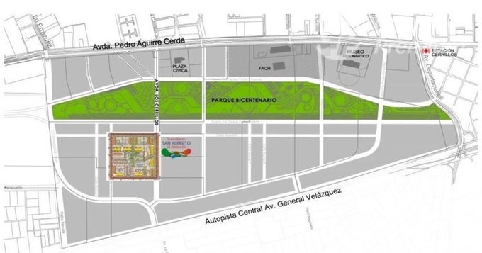El condominio es un edificio que se inserta en el proyecto San Alberto de Cerrillos, construido en un paño 8,4 hectáreas. en el centro de Ciudad Parque Bicentenario, a pasos del Parque de 50 hectáreas (que cuenta con pista de skate, muro de escalada y laguna navegable, entre otros). y con acceso a través de Av. Cerrillos.
