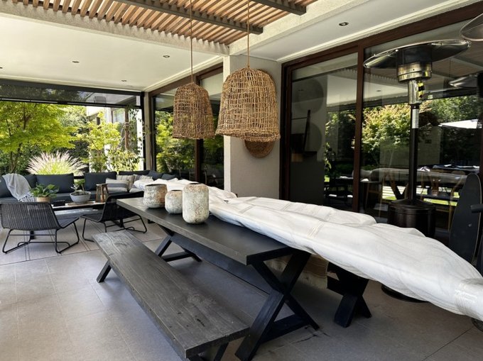 Amplia terraza techada que abarca living y comedor.