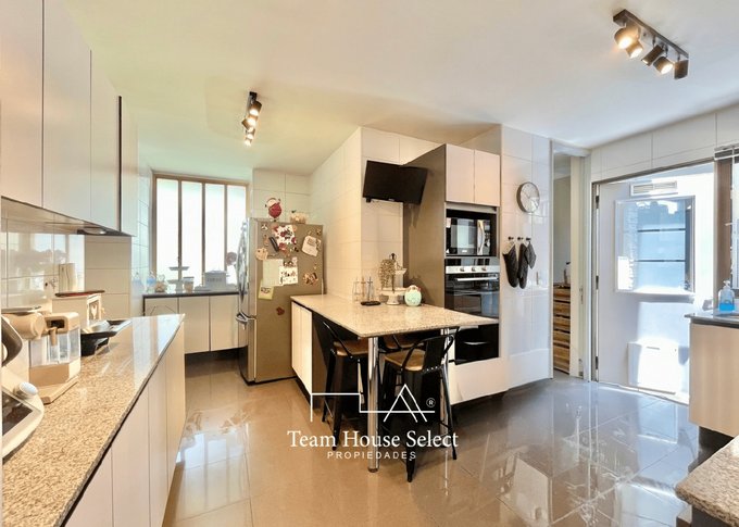 Cocina moderna, con logia cubierta y excelente ventilación.