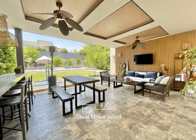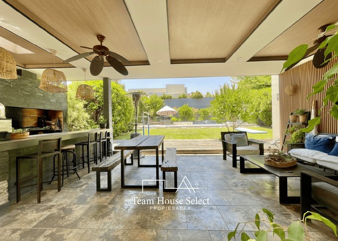 -Quincho amplio, completamente equipado: parrilla, leñero, horno a leña, lavacopas, repisa bar, iluminación LED y dos ventiladores, luminaria decorativa. Ventilación natural y diseño contemporáneo