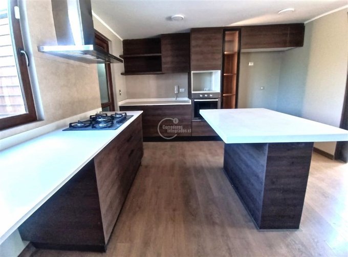 Cocina moderna con isla, muebles base y muro con cubierta de silestone, gran Loggia / Bodega, 4 dormitorios, 3 baños, toda la casa con ventanas Termopanel.