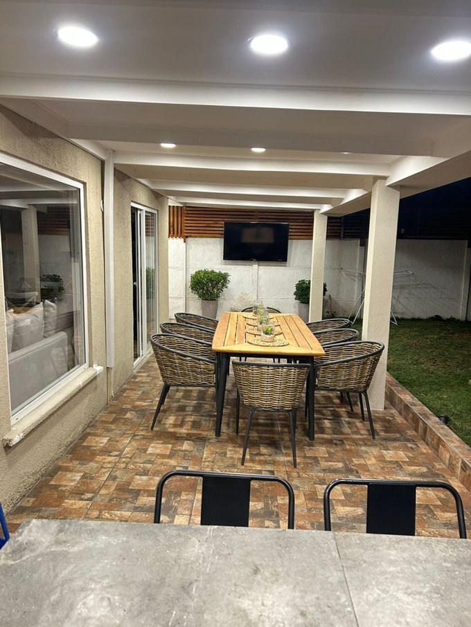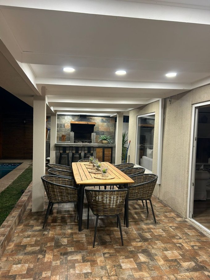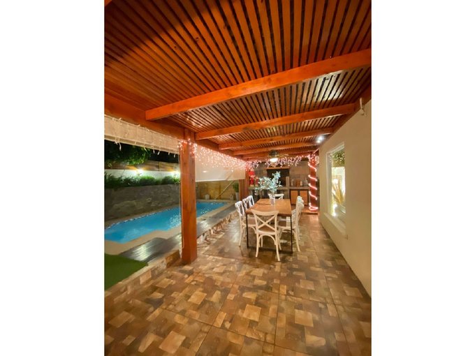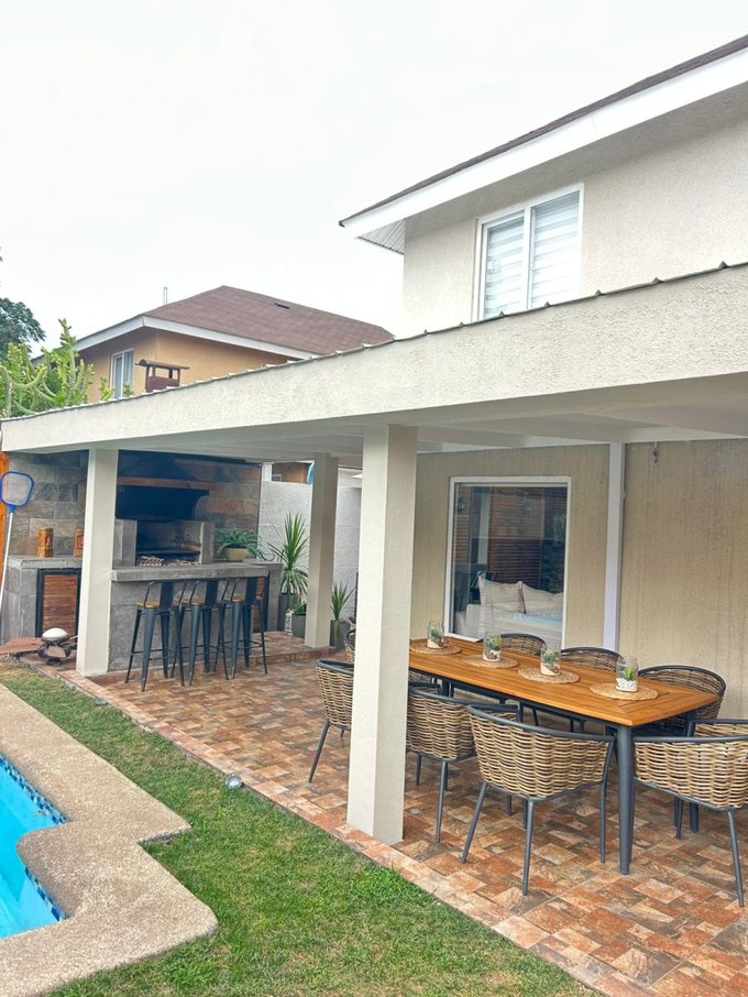 Detalles: piscina, quincho equipado y con mesón en obra, terraza techada, jardín formado, estacionamiento para dos vehículos.