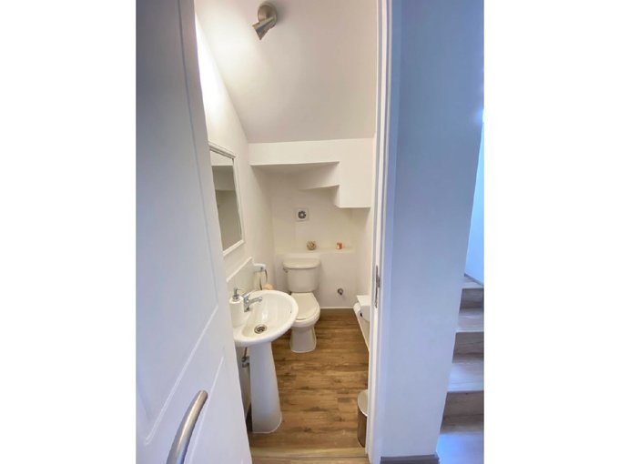 Segundo piso: dos habitaciones y un baño completo, amplia sala de estar con opción de habilitar una cuarta habitación.