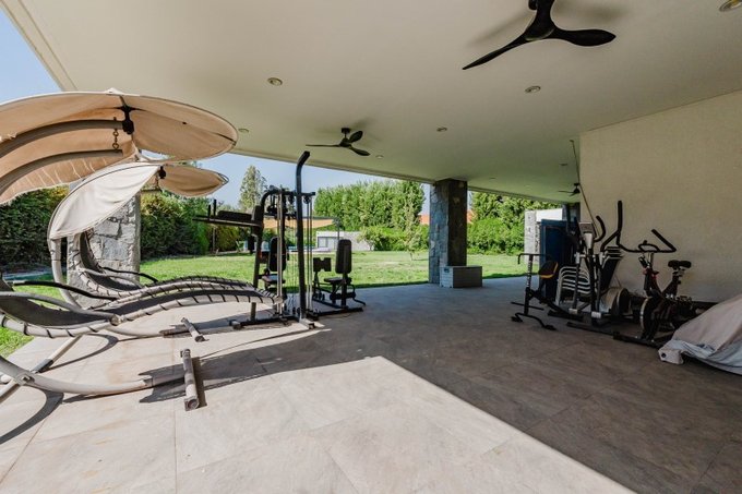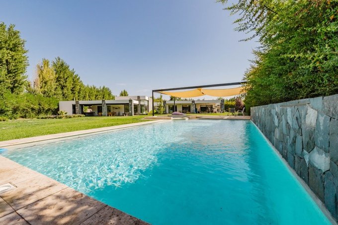 Quincho techado, mesón, lavaplatos, horno, parilla a gas y a leña, baño y bodega.