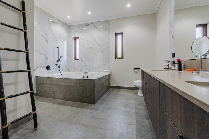 Dormitorio principal en suite con baño con doble lavamanos, doble ducha, jacuzzi, 2 walk in closet de gran tamaño con puertas y porta zapatos.