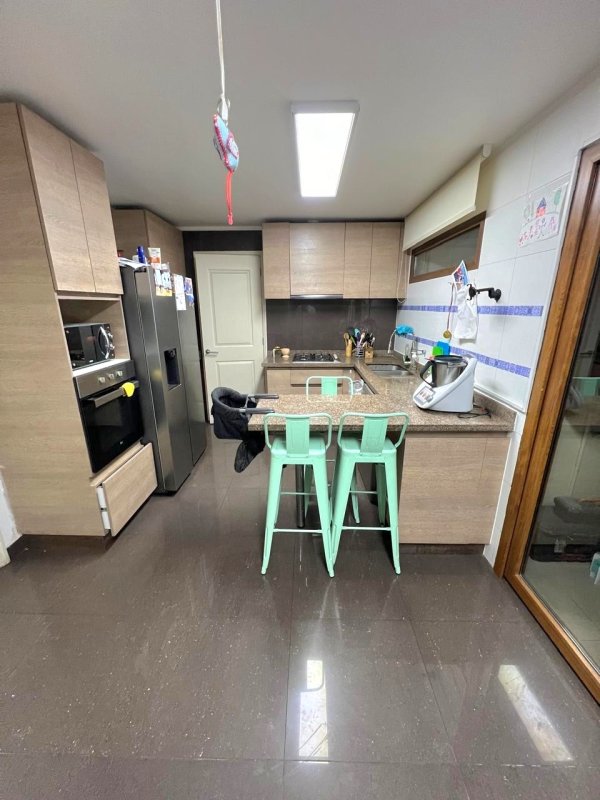Cocina ampliada y equipada con horno, encimera y campana.