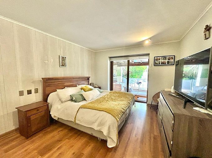 Amplio dormitorio principal en suite con su baño. Cuenta con espacio para escritorio y salida directa al jardín.