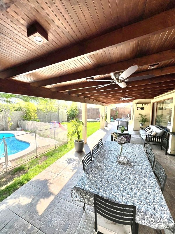 Logia techada, dormitorio y baño de servicio.