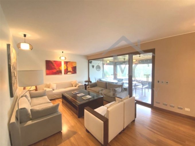 - Amplio living comedor separados con pisos de madera y amplia vista al jardín y terraza techada con quincho equipado.