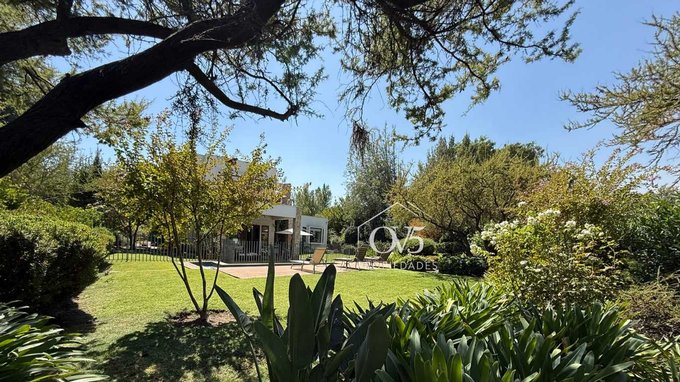 Casa orilla cancha, vista despejada. Amplia terraza techada con salida a jardín lindo , formado, muy bien mantenido, riego automático ,árboles antiguos y grandes. Piscina con reja con terraza deck. Patio servicio techado. Estacionamiento techado para 2 autos. estacionamientos descubierto para varios autos. Portón automático.
