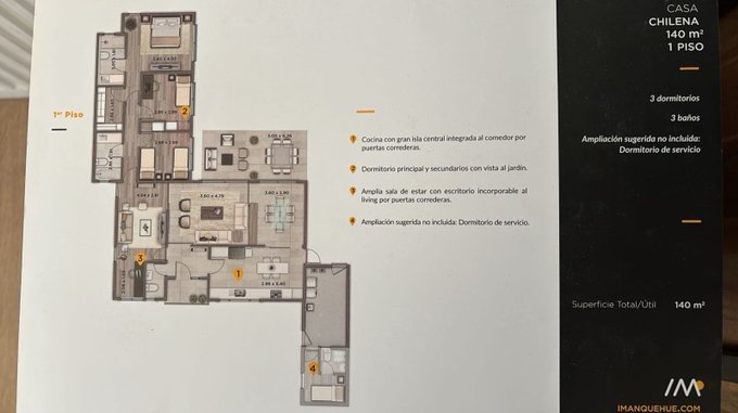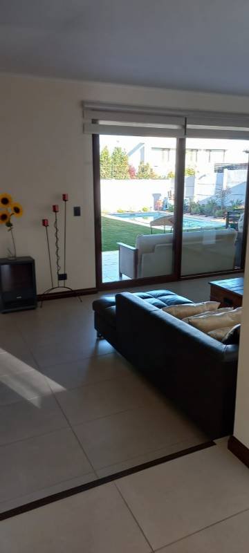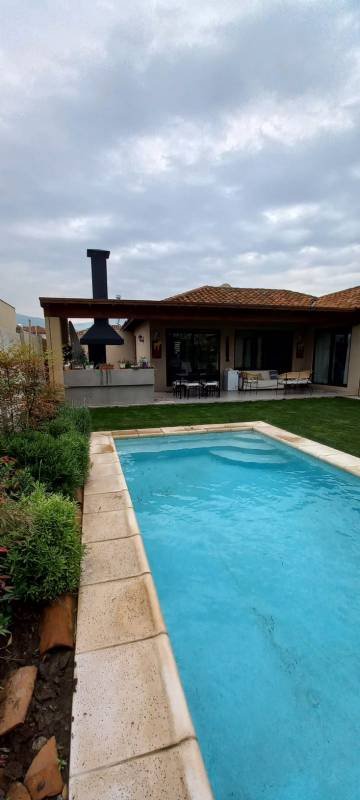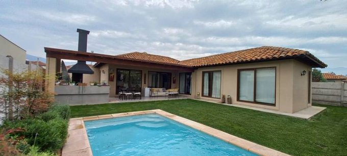 Además, tiene una terraza de 20 m2 con orientación Poniente. Gastos comunes aproximados de $140,000. Entre sus atributos se encuentran: Terraza techada con quincho, Patio amplio con piscina temperada. Amplia Cocina equipada amoblada y cuenta con barra desayunadora, Comedor, living en desnivel. Dormitorio principal en Suite Walkin clóset, Sala de estar y/o Sala de juegos, Lavandería, Baño de visitas, y Estacionamiento para invitados. En un entorno seguro con áreas verdes y acceso controlado 24/7. Comuna tranquila y con excelente calidad de vida. Ubicada en Chicureo, ¡Una oportunidad única para vivir con todas las comodidades!