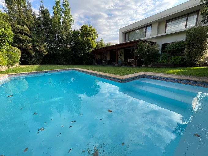 Preciosa, acogedora y muy bien mantenida casa orientación Oriente: Primer nivel está amplio Hall de entrada, baño de visita con luz natural, amplia y luminosa cocina ampliada con comedor diario, living - comedor separado con salida a un gran jardín, tres dormitorios, uno de ellos en suite, y los otros dos comparten un baño completo, uno de estos dormitorios esta ampliado, sala de estar con salida a jardín, A/C en sala de estar, dormitorio principal y oficina o quinto dormitorio, baño de servicio, linda terraza con ventilador, quincho , logia, piscina y amplio jardín formado con riego automático luces, bodega de 2 x 2 mtrs.