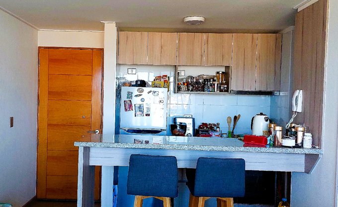 ✔ Cocina americana equipada, campana, horno, cocina.