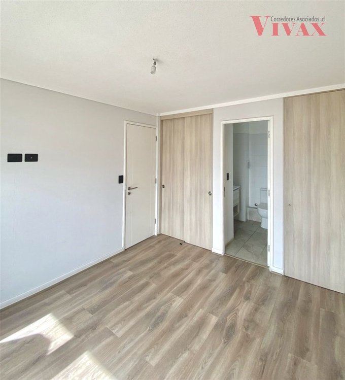 El departamento cuenta con living con amplia terraza, 2 dormitorios, 2 baños, closet en ambos dormitorios, cocina americana equipada con muebles base y aéreos con cubierta de granito, incluye encimera, horno eléctrico, campana extractora retráctil, ventanas de termopanel con aislación térmica, cortinas roller, conexión para lavadora y calefacción.