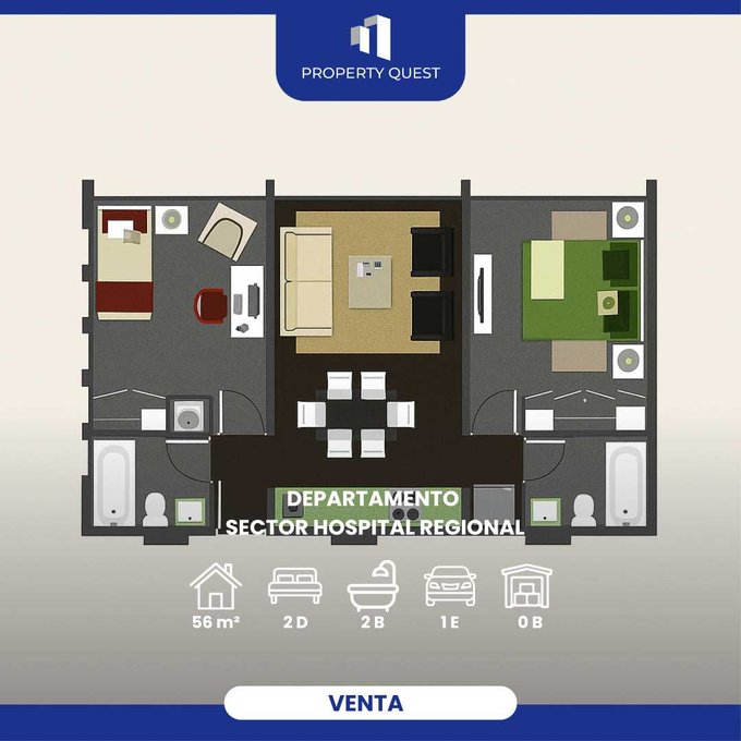 Este moderno departamento de 56 m destaca por su diseño tipo mariposa, ideal para quienes buscan invertir con estilo y funcionalidad. Cuenta con dos cómodos dormitorios, dos baños y una distribución que optimiza cada rincón del espacio.