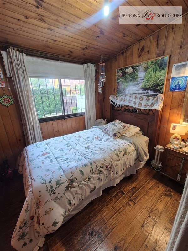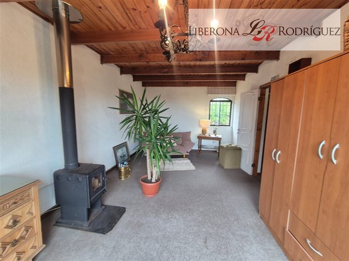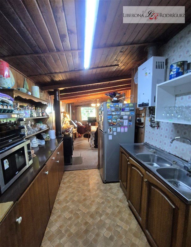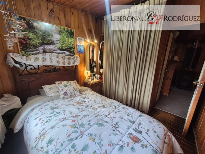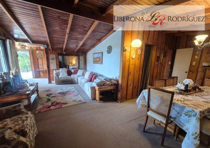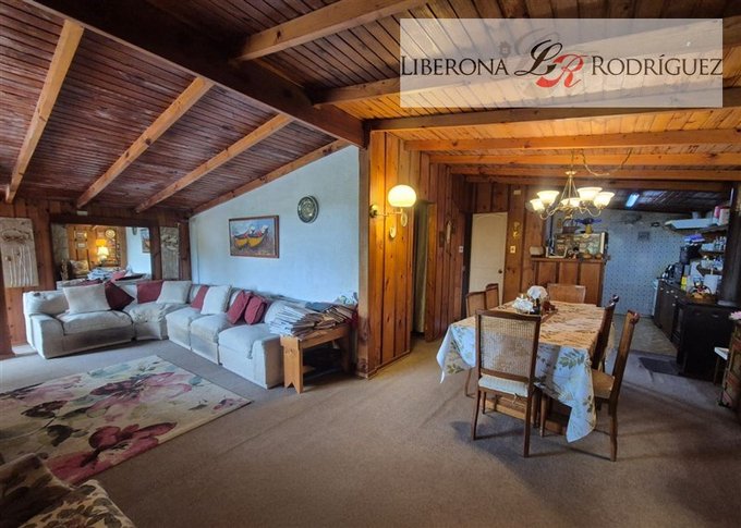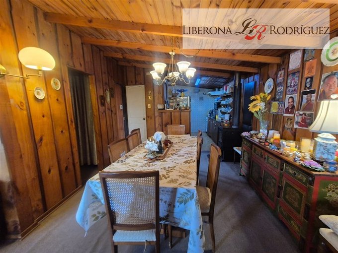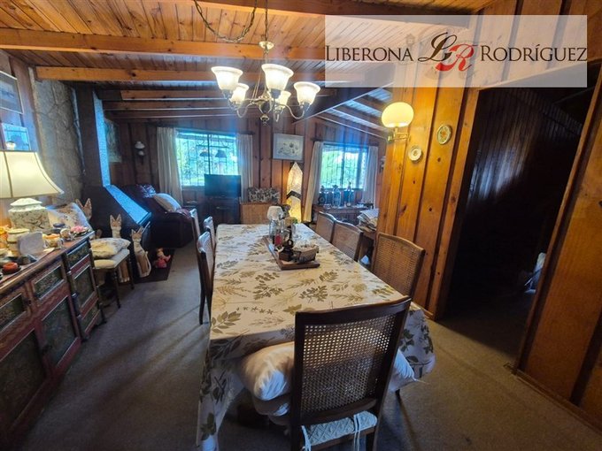 2 dormitorios, dormitorio de servicio o bodega con baño, cocina integrada, 1 baño completo más baño por habilitar, living con chimenea a leña, comedor con bosca (en forma de L).