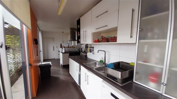 Cocina con comedor de diario, dormitorio de servicio en suite, bodega de gran tamaño, patio de servicio techado.