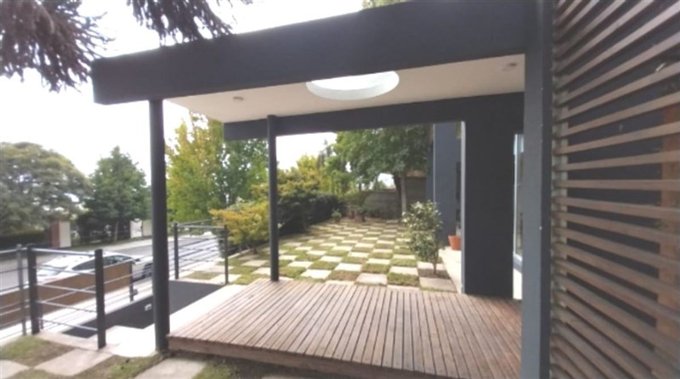 Antejardín, estacionamiento para 3 vehículos sin techar, portón y cerco eléctrico.