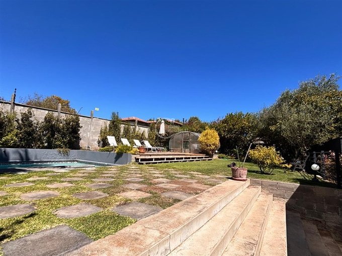 Hall de entrada, living comedor juntos con salida a terraza techada y quincho completamente equipado, piscina de 3 x 6 mts., amplio jardín e invernadero.