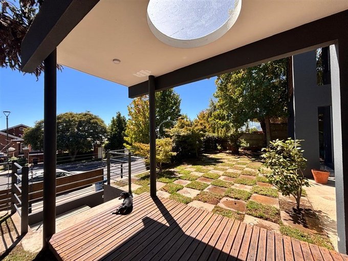 Antejardín, estacionamiento para 3 vehículos sin techar, portón y cerco eléctrico.