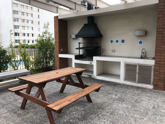 El edificio cuenta con 2 piscinas al aire libre, 2 quinchos, gimnasio equipado, sala multiuso, sala de estudios, bicicletero y amplios jardines.
