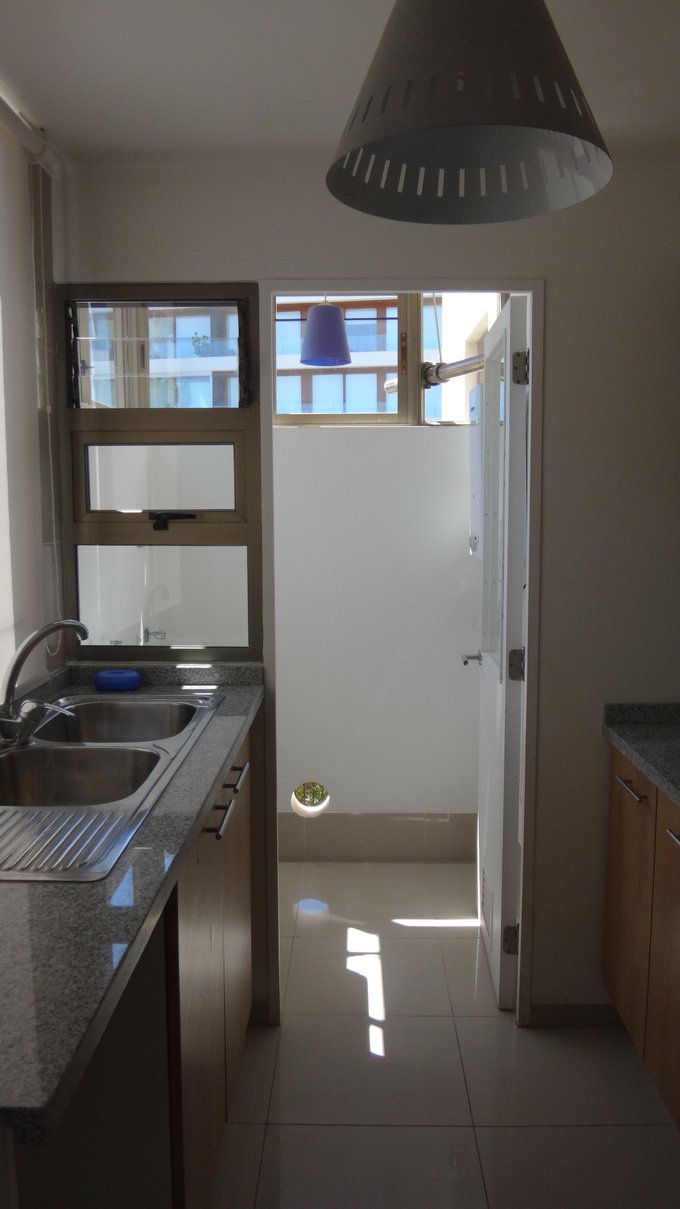 La cocina está completamente amoblada con cocina encimera y horno eléctrico. Tiene una logia con lavadero incluido.