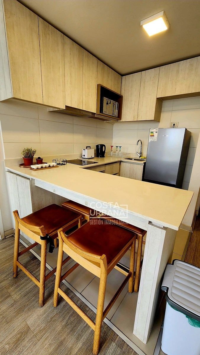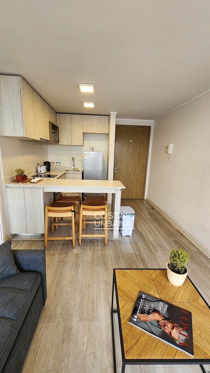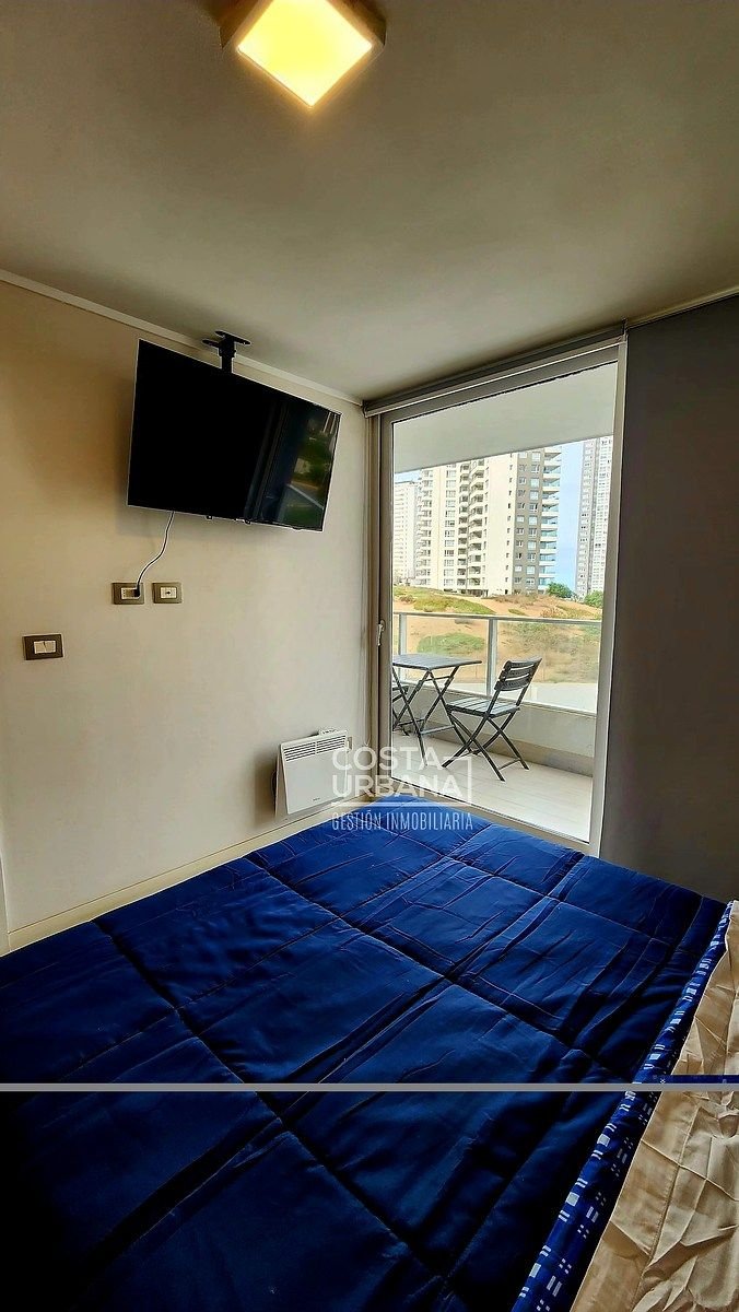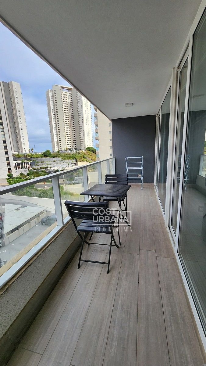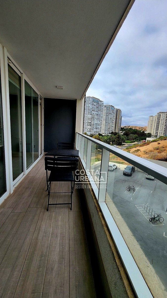 Es un departamento, seminuevo, de un dormitorio y un baño, con cocina abierta a la sala y clóset con conexión para lavadora, además, posee de una cómoda terraza con vista parcial a las dunas de Concón y un estacionamiento subterráneo.