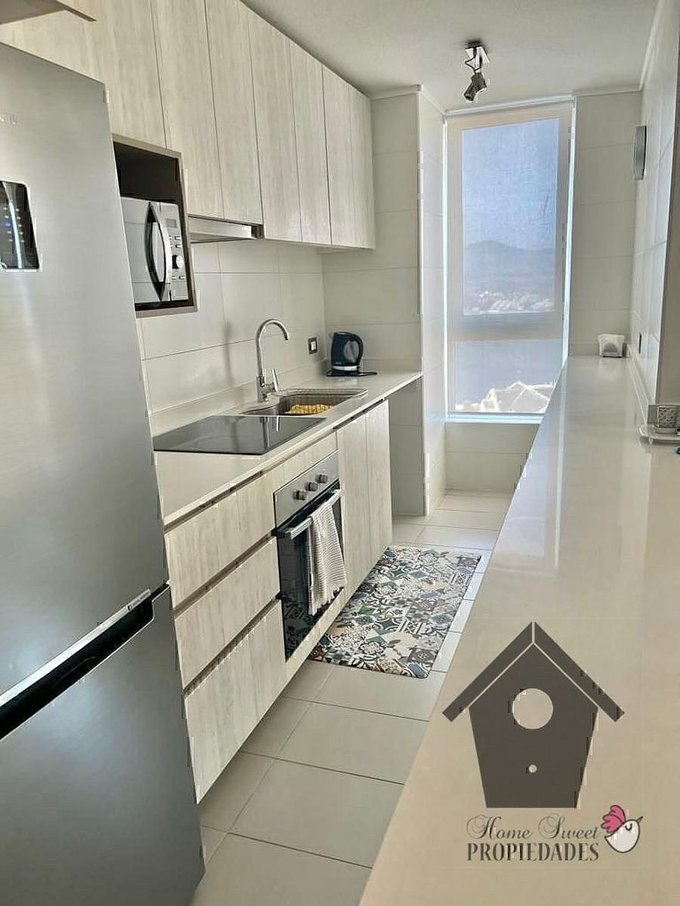 Piso flotante vinílico SPC en estar comedor, pasillo y dormitorios, Gres Porcelanico en cocina terraza y baños. Ventanas con marcos de PVC y cristales termopanel. Cubierta de cuarzo en cocina, Cocina amoblada full eléctrica, equipada con encimera vitroceramica de 4 platos, horno empotrado y campana extractora. Calefacción electrica individual. Agua caliente con caldera del edificio.